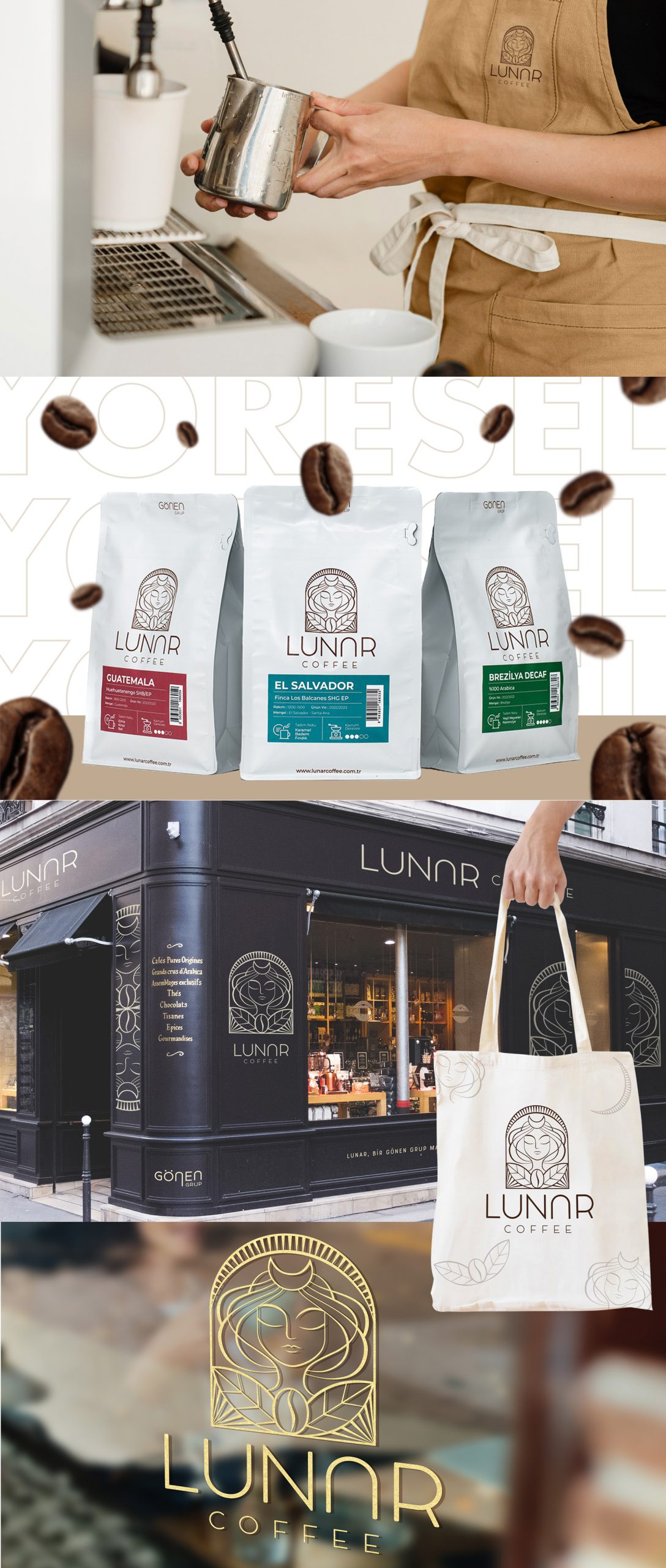 Lunar Coffee, ismini Roma Ay Tanrıçası Luna’dan alıyor. Kahve’nin çağrışımlarını Ay’ın her kültürde farklı yönleriyle işlenen zengin metafor dağarcığıyla birleştiren Lunar markası, bizim açımızdan ilham verici bir tasarım süreciydi.